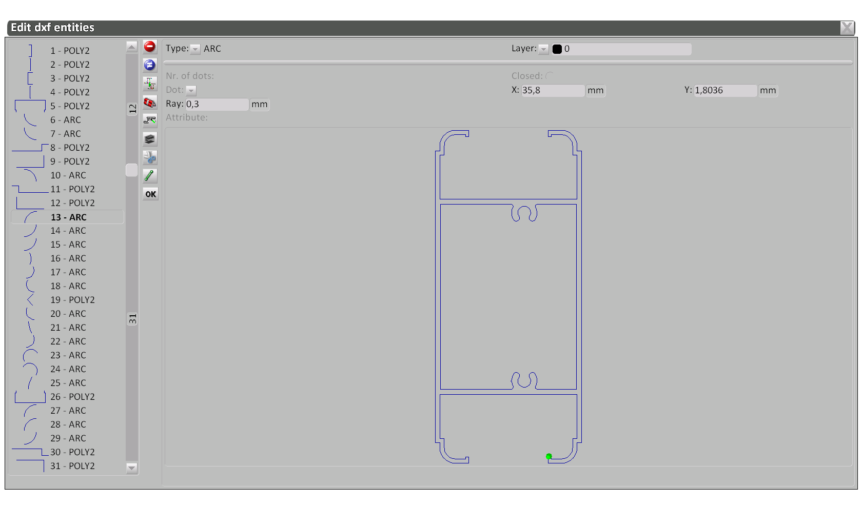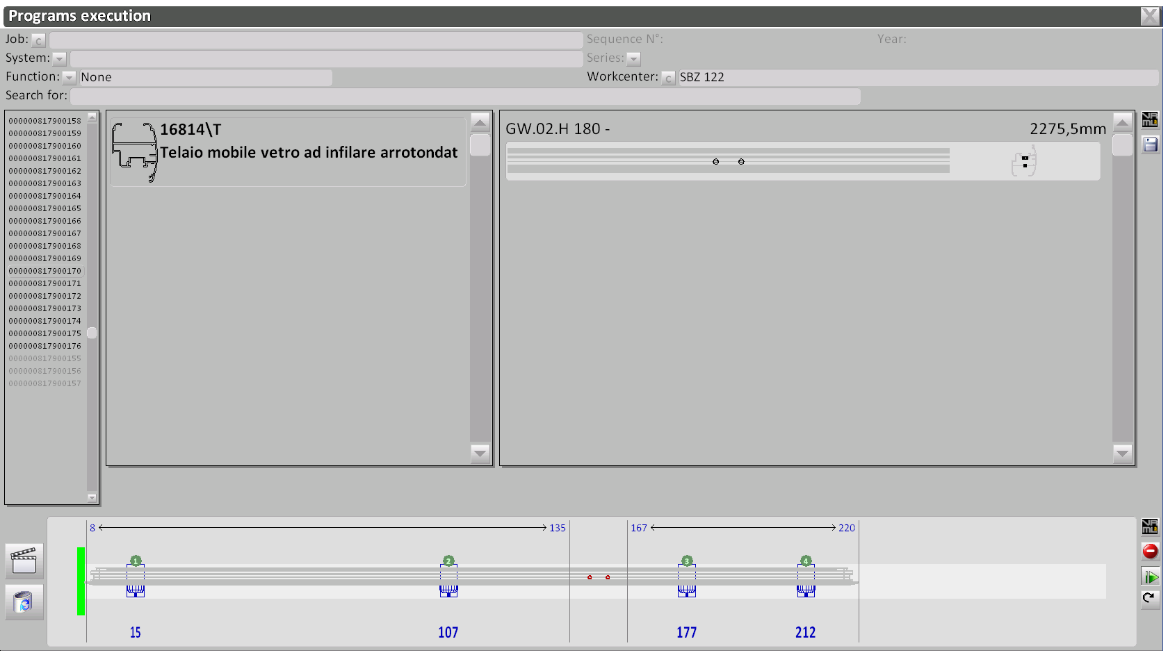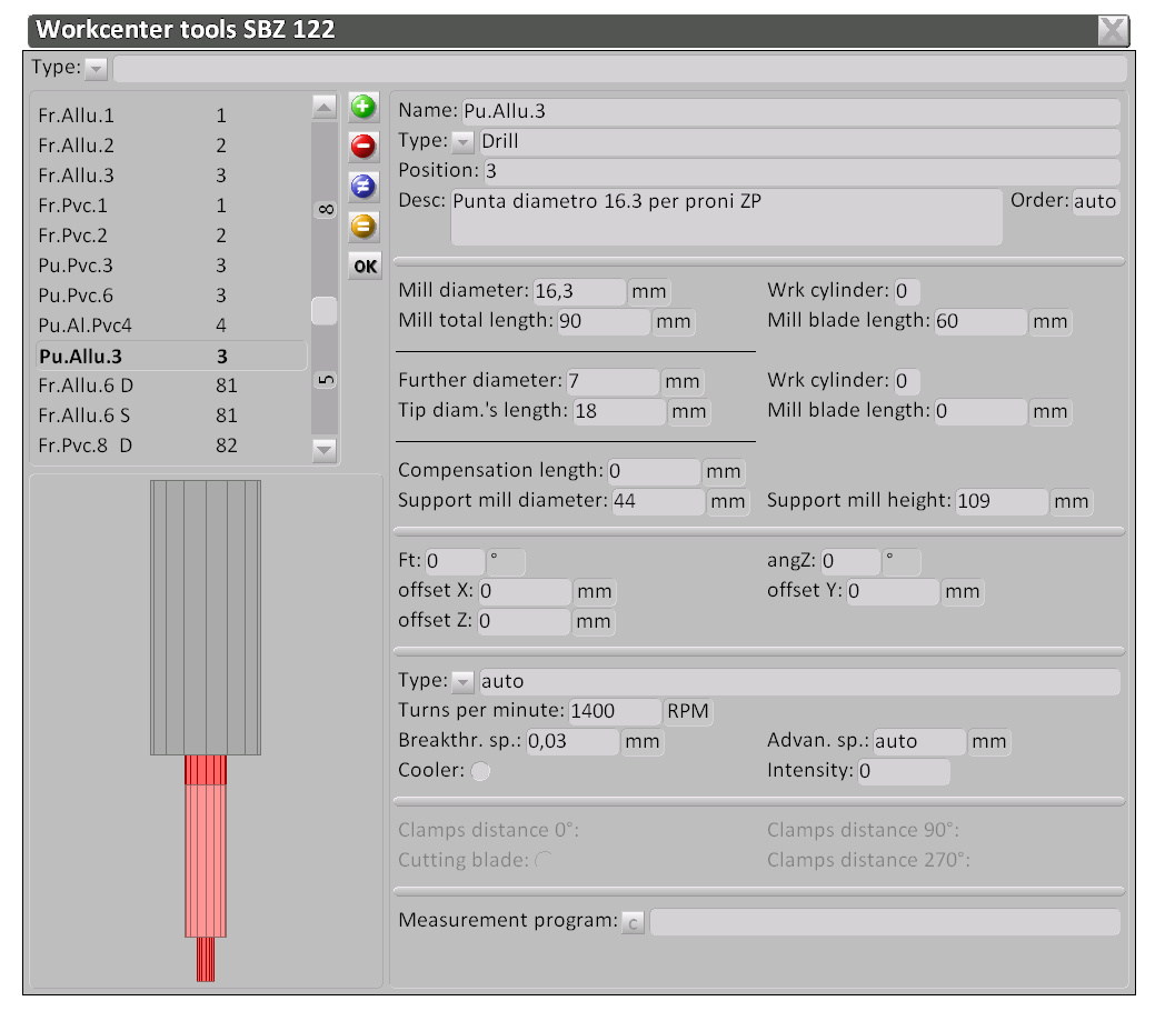 With Opera CAM we can preview the list of programs to be executed and check the one in execution; adjust the position of the clamps on the profile; check the position of the spindle for holes or slots; archive the tools and programs.
